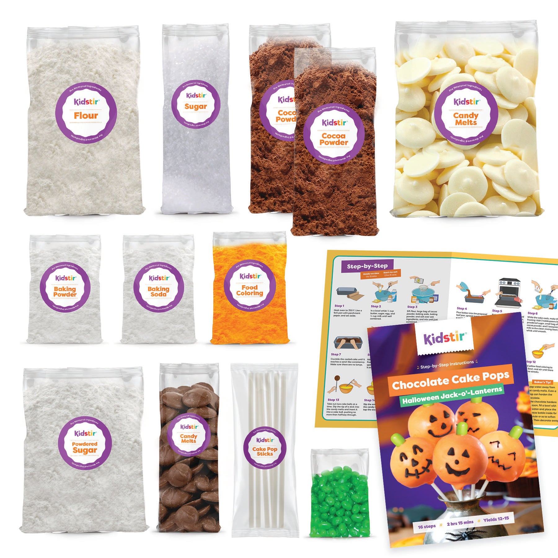 - Pre-measured dry ingredients and candy decorations included